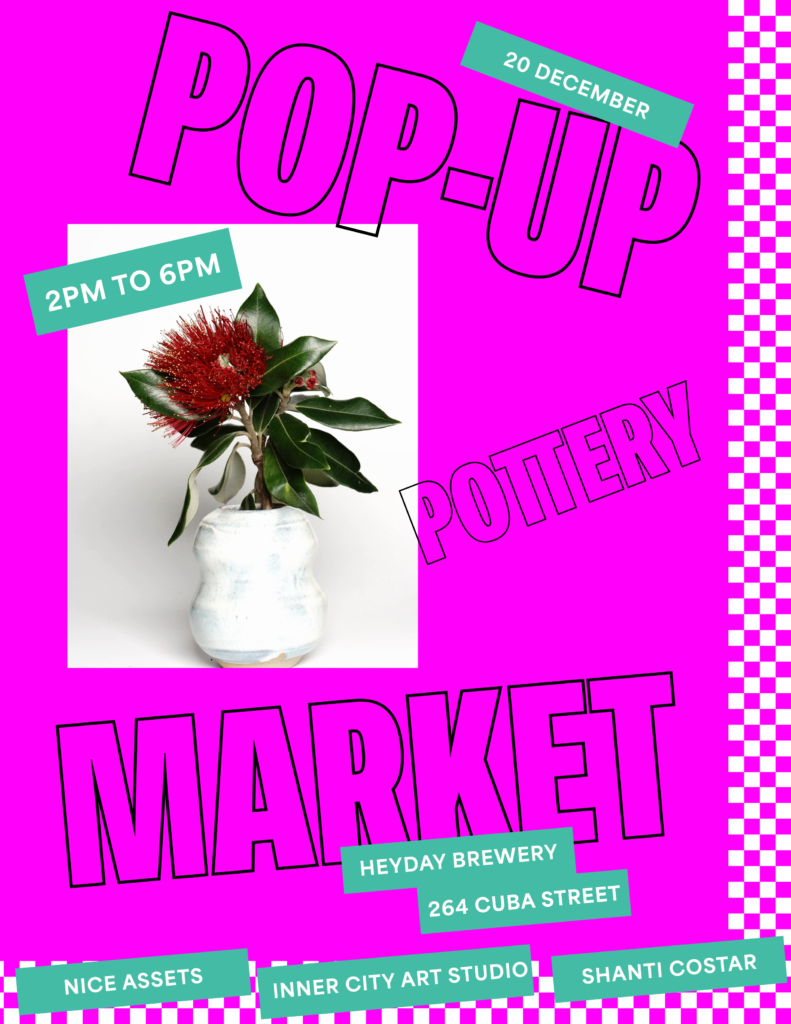 Save the date! @innercityartstudio @coshantista and I will be at @heydaybeerco 264 Cuba St Pōneke 20 Dec from 2pm to 6pm